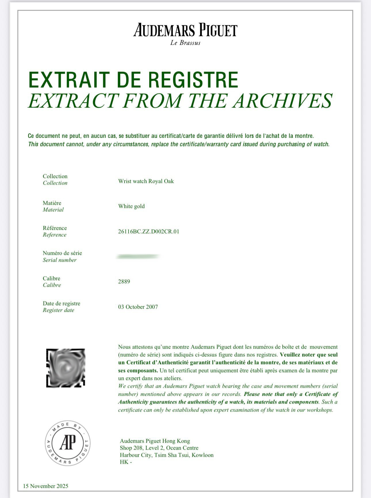 Audemars Piguet/愛彼 皇家橡樹系列 26116BC.ZZ.D002CR.01 陀飛輪 18K白金滿鑽 腕錶 #BW01183